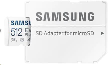 Samsung Micro SDXC memorijska kartica, 512 GB EVO Plus, U3, V30, A2, UHS-I + SD adapter
