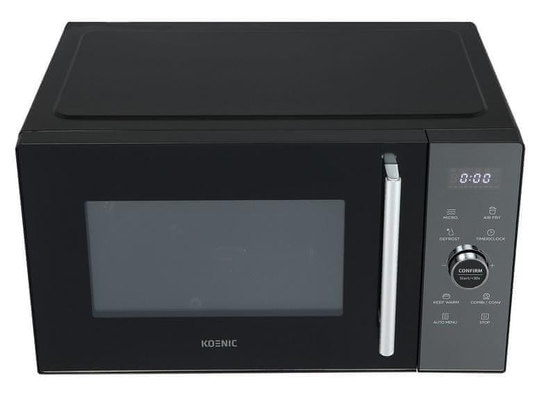 Mikrovalna pećnica Koenic Kmwc 2625 DB, s elegantnom crnom završnom obradom, praktičan je uređaj kapaciteta 26 litara koji će se savršeno uklopiti u svaku kuhinju. S 900 W snage osigurava brzo i ravnomjerno zagrijavanje hrane, štedeći vrijeme i energiju. Intuitivna upravljačka ploča olakšava postavljanje parametara, a razne funkcije, uključujući podesivo vrijeme i snagu, omogućuju potpunu kontrolu nad procesom pripreme hrane. Kompaktni dizajn i kapacitet od 26 litara čine mikrovalnu pećnicu ne samo funkcionalnom već i estetski ugodnom i jednostavnom za korištenje. Ovaj nezamjenjiv uređaj u svakoj modernoj kuhinji kombinira učinkovitost s elegantnim dizajnom. Prednosti: – Snaga mikrovalne pećnice 900 W – Kapacitet 26 L – 10 automatskih programa – Vrlo jednostavno za korištenje – 5 postavki topline – AirFry – Održavanje topline – Koenic – MediaMarktova vlastita marka za vas Vrlo jednostavna za korištenje. Tražite jednostavnu, ali elegantnu mikrovalnu pećnicu koja je i svestrana i praktična? Tada je mikrovalna pećnica Koenic Kmwc 2625 DB savršen dodatak vašoj kuhinji, jer se može koristiti za pečenje, odmrzavanje, podgrijavanje i kuhanje hrane. AirFry je tehnika kuhanja koja koristi vrući zrak umjesto masnoće, stvarajući hrskavu teksturu sličnu prženju, ali s malo ili bez ulja. Koenic – MediaMarktova vlastita marka za vas. Pozovite pomoćnike u svoj dom koji će vam pomoći da brzo i učinkovito kuhate, čistite i brinete o svojoj ljepoti. Kvaliteta i funkcionalnost Koenic uređaja osigurat će iznimno zadovoljstvo korisnika, dok će minimalistički dizajn proizvoda savršeno naglasiti moderni karakter vašeg doma. Tehničke specifikacije: