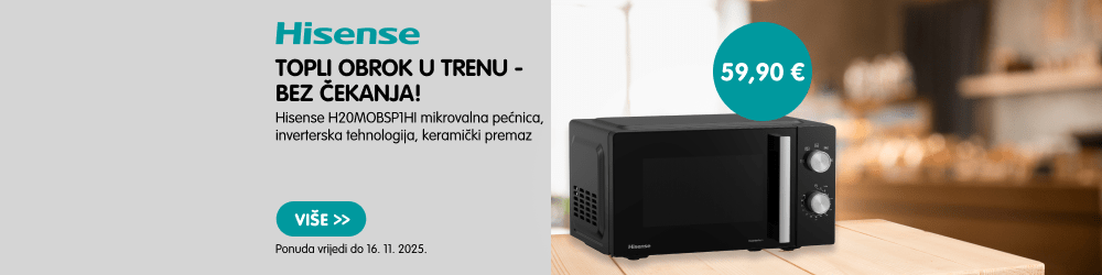 Mikrovalna pećnica Hisense H20MOMS4HG može se pohvaliti zapreminom od 20 l, grill funkcijom, 7 unaprijed postavljenih programa rada, rotirajućom pločom promjera 255 mm te snagom mikrovalova od 700 W i infracrvenim grijačem od 800 W.