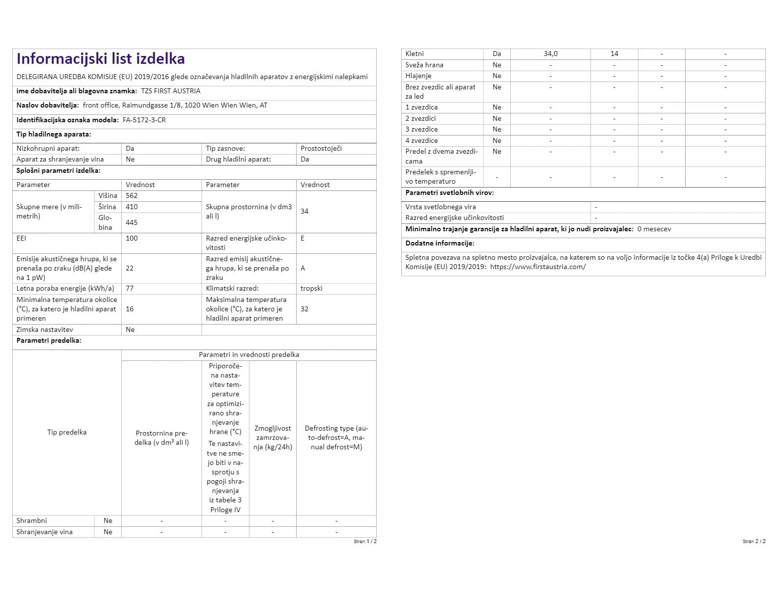 - Temperatura hlađenja 8°C pri sobnoj temperaturi od 25°C