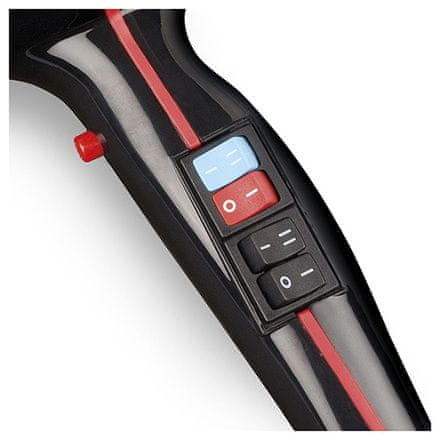 Značajke: – profesionalni AC motor – 2 brzine – 3 temperature – ION funkcija – protok hladnog zraka – ekstra tanki koncentrator zraka – difuzor – uklonjivi stražnji filter zraka – ušica za vješanje.