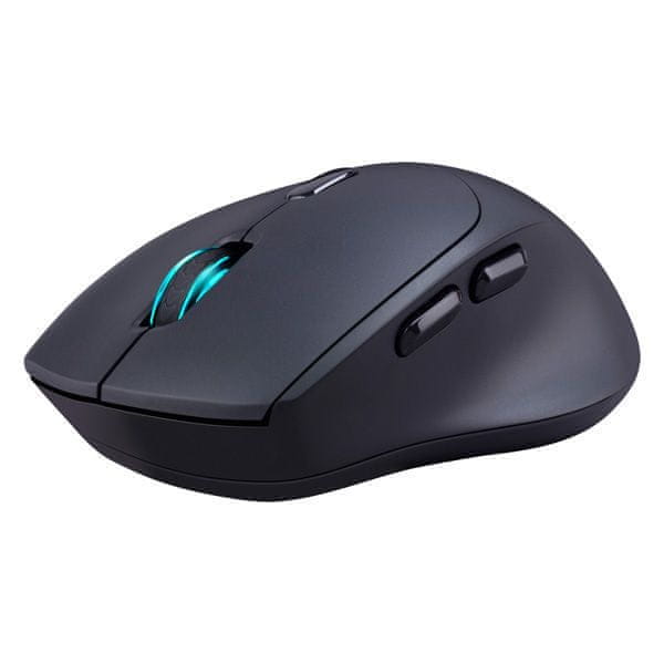 Za veću funkcionalnost miš ima dva bočna gumba za palac, koja omogućuju bržu navigaciju prilikom pregledavanja interneta ili rada s dokumentima. Široki gumirani kotačić za pomicanje omogućuje precizno pomicanje i bolje prianjanje.