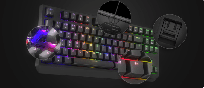Genesis Thor 230 TKL opremili smo linearnim Outemu crvenim prekidačima , koje karakterizira visoka preciznost, aktiviranje bez obzira na to gdje se tipka pritisne i visoka dinamika. Međutim, znamo da kao igrač možete imati vlastite preferencije. Zato smo u Genesis Thor 230 TKL implementirali Hot Swap – tehniku koja će vam omogućiti zamjenu bilo kojeg 3-pinskog mehanizma mikro prekidačem, kao što su Outemu, Akko, KTT. Jednostavno izvucite ugrađeni mehanizam i umetnite novi. Zahvaljujući Hot Swap sustavu, također ne morate kupovati novu tipkovnicu kada jedan prekidač zakaže. Zamijenite ga za samo nekoliko sekundi. Jednostavno je.