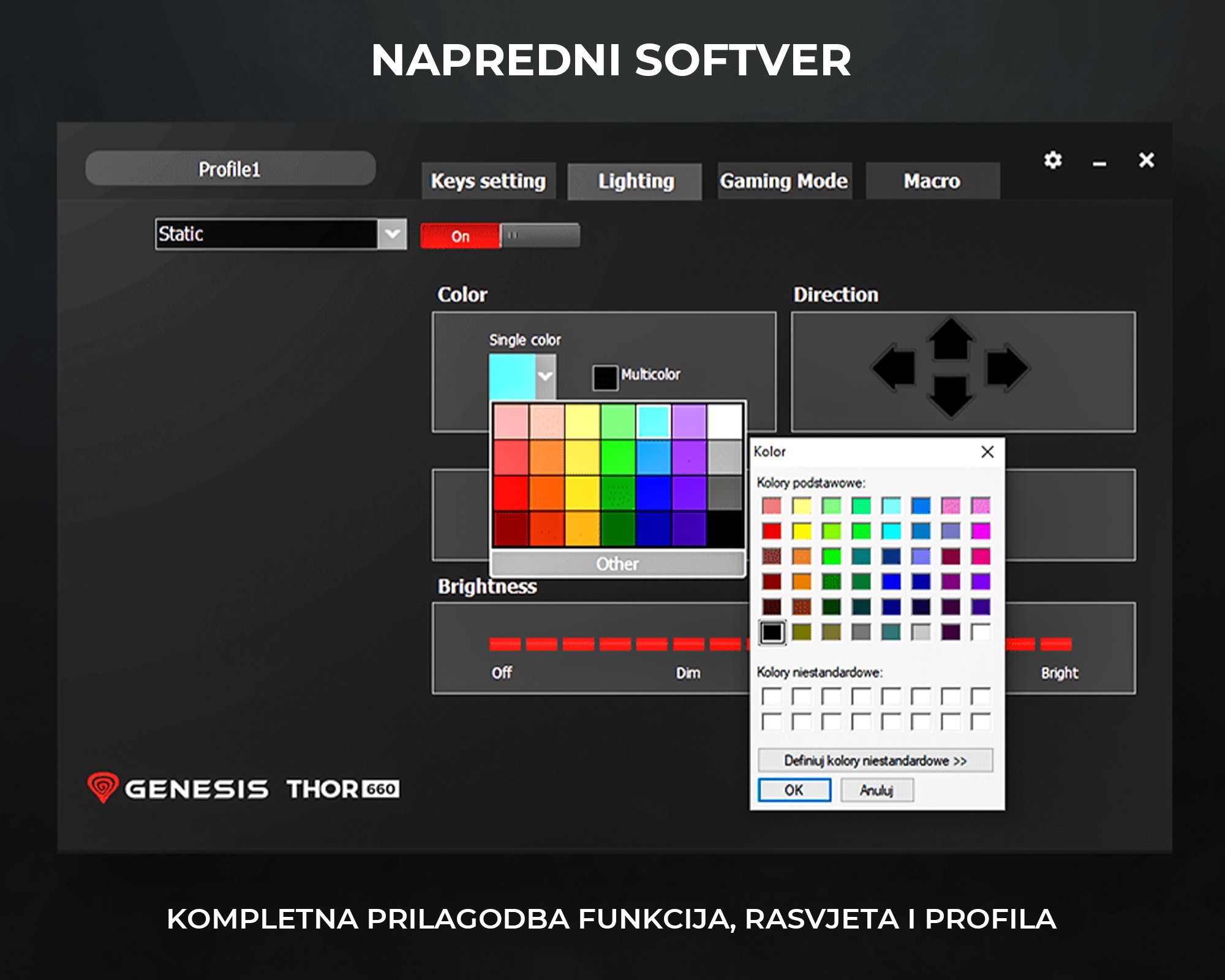 - Napredni softver – podešavanje funkcija, osvjetljenja, profila i makronaredbi.