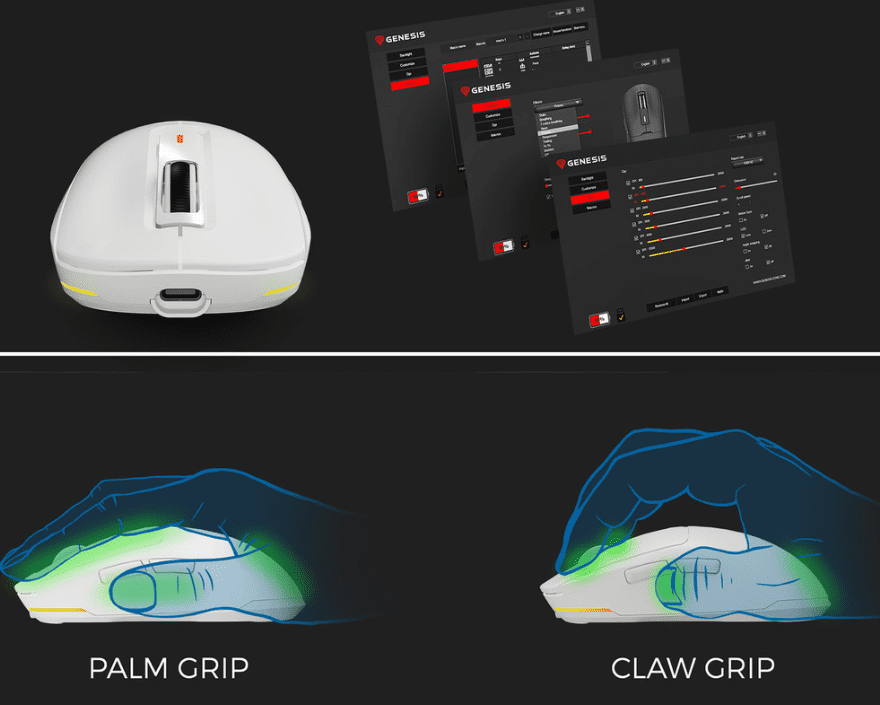 GENESIS Zircon 660 Pro teži samo 57 grama. Što to znači u praksi? Veća stabilnost pri podizanju i znatno brži odziv. Ovu malu težinu postigli smo posebno dizajniranim okvirom, promišljenim odabirom materijala i izrezima na donjoj strani. Sve to za ugodnije iskustvo igranja.