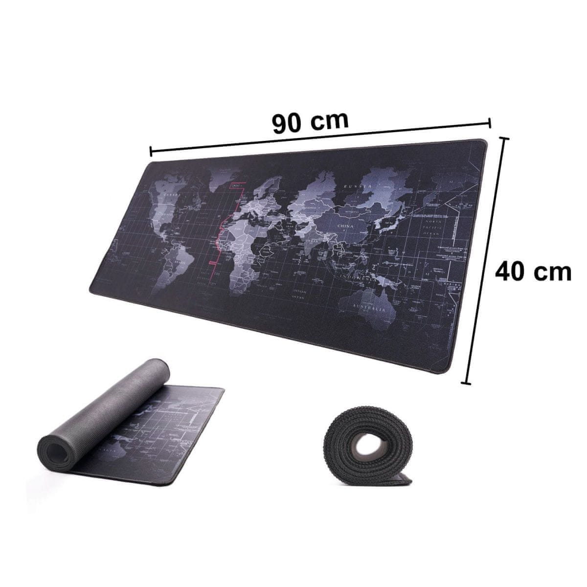 XXL podloga za miša – dimenzija 40 × 90 × 0,4 cm, štiti površinu stola od ogrebotina, mrlja ili drugih oštećenja. Na strunjači su označeni nazivi država, vremenskih zona i kontinenata.