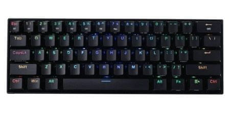 Kompaktni TKL format posebno je pogodan za FPS igre, jer ostavlja više prostora za miša, a također je jednostavan za preuzimanje. RGB osvjetljenje ima 13 postavljenih načina rada koji se lako mogu odrediti pritiskom na tipku. Ugrađeni smeđi prekidači taktilni su i dovoljno tihi za nesmetan uredski rad.