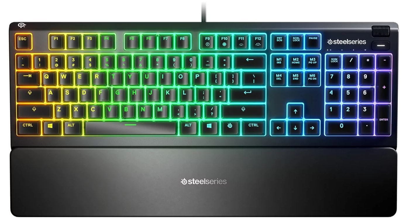 Izuzetno tiha Apex 3 tipkovnica ima 10 zona podesivo RGB osvjetljenje, IP32 zaštitu, multimedijske tipke i magnetski oslonac za zglob.