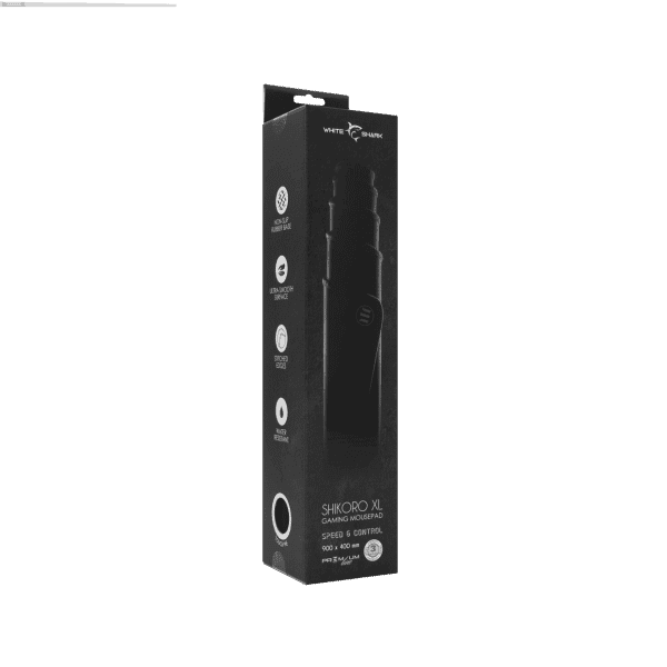 White Shark ESL-MP6 Shikoro XL podloga za miš – velika podloga dimenzija 900×400×3 mm izrađena od kvalitetne celularne gume s površinom protiv klizanja. Pruža stabilnost, preciznost i udobnost pri radu ili igranju. Elegantna crna boja.