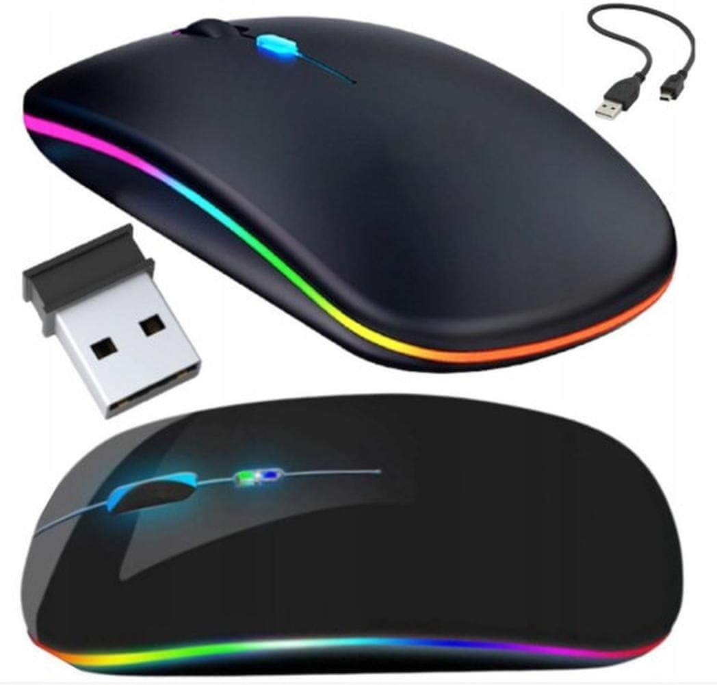 Nudimo vam WIFI bežični punjivi optički miš u elegantnoj crnoj boji koji će osigurati besprijekorno i udobno korištenje tijekom rada ili igre. Ovaj miš opremljen je visokom rezolucijom od 1200 DPI, što omogućuje precizno praćenje i glatko kretanje po ekranu.Zahvaljujući bežičnoj vezi putem WIFI-a, imat ćete slobodu kretanja bez nepotrebnih kablova. Jednostavno povežite miš s računalom ili prijenosnim računalom putem WIFI-ja i počnite uživati u bežičnoj slobodi. Veza je stabilna i pouzdana te omogućuje nesmetan rad bez kašnjenja i prekida.Miš je ergonomski dizajniran, što osigurava udoban zahvat i smanjuje zamor ruku tijekom dugotrajne uporabe. Tipke na mišu jednostavne su za korištenje i pružaju brzi klik. Osim toga, miš je opremljen LED RGB osvjetljenjem koje omogućuje podešavanje boja i stvaranje atraktivnog vizualnog efekta.Punjiva baterija u mišu omogućuje dugotrajno korištenje bez potrebe za čestim punjenjem. Jednostavno ga