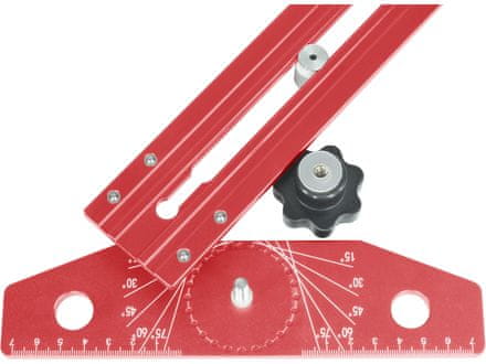Unaprijed postavljeni kutovi od 15°-30°-45°-60°-75°-90° mogu se precizno i ??čvrsto fiksirati pomoću sustava „kuglice i utičnice“ i zatezanjem maticom za tlačni vijak Klizni klizač za označavanje.
