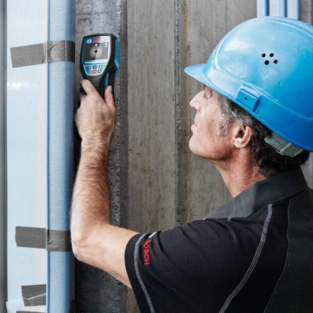 Model univerzalnog detektora D-Tect 120 tvrtke BOSCH Professional s funkcijom točkastog mjerenja za točnu detekciju na uskim površinama. Metoda centriranja za točno određivanje središta objekta. Lokalizacija objekata do materijalne dubine od 12 cm. Koristan je za lociranje vodovodnih cijevi ili servisa te kao osiguranje od nesreća pri bušenju, izgradnji, vodoinstalaterskim, električnim i grijačkim radovima.