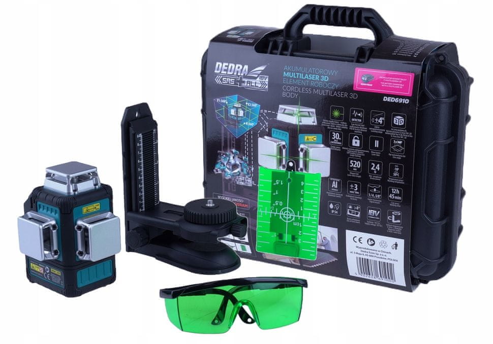 Dedra Baterija Sas+all PRO 18V. 3D 12 redova zelena građevinska laserska libela OSRAM