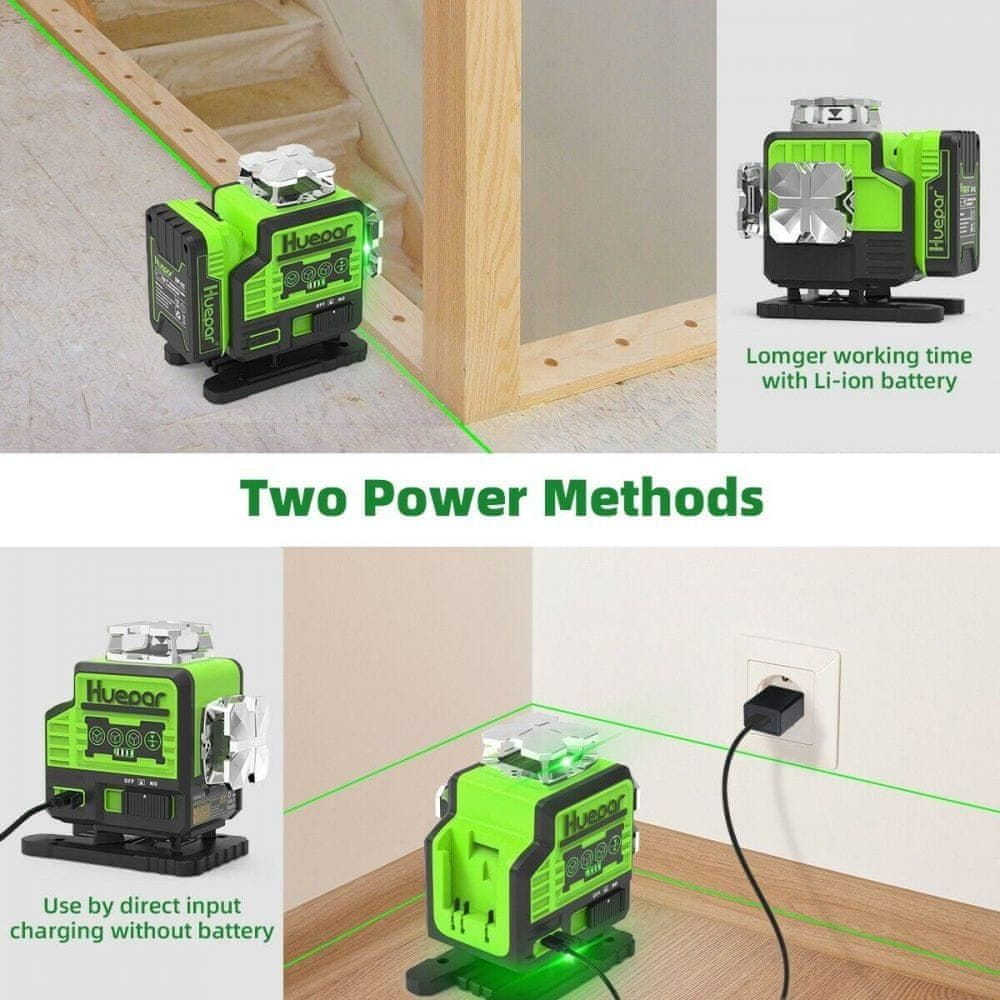 Huepar 2600mAh 16 Line Construction Zelena laserska nibela Bluetooth + daljinski