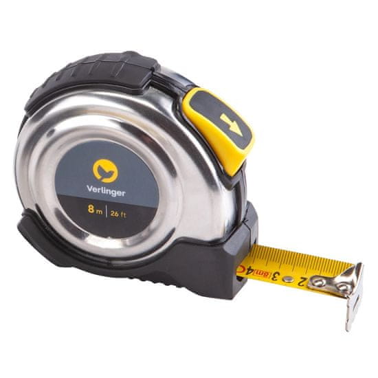 Verlinger 8 m sklopiva mjerna traka PRO izrađena je s kućištem od nehrđajućeg čelika, otpornog na hrđu i koroziju, što jamči dugotrajnu upotrebu. Robusna konstrukcija osigurava čvrstoću i pouzdanost, zbog čega je alat na koji se možete osloniti u svakoj situaciji.