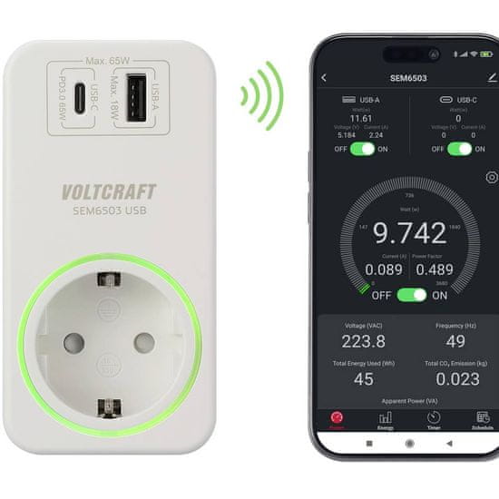 Voltcraft SEM6503 mjerač potrošnje energije s USB mjerenjem i bežičnom utičnicom