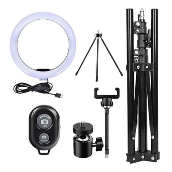 Selfie kružno LED svjetlo – snaga 24W, maksimalna visina stativa 220 cm, promjer lampe 30 cm, 10 stupnjeva podešavanja intenziteta svjetla. Boje osvjetljenja: neutralne, tople, hladne.