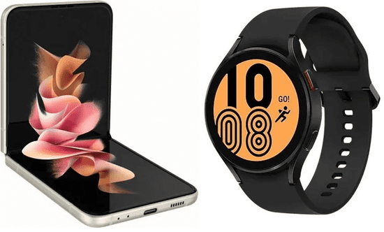 Samsung Samsung Galaxy Z Flip3 5G mobilni telefon, 8GB/128GB, krem i Samsung Galaxy Watch4 (SM-R870) pametni sati, 44 mm, BT, crna