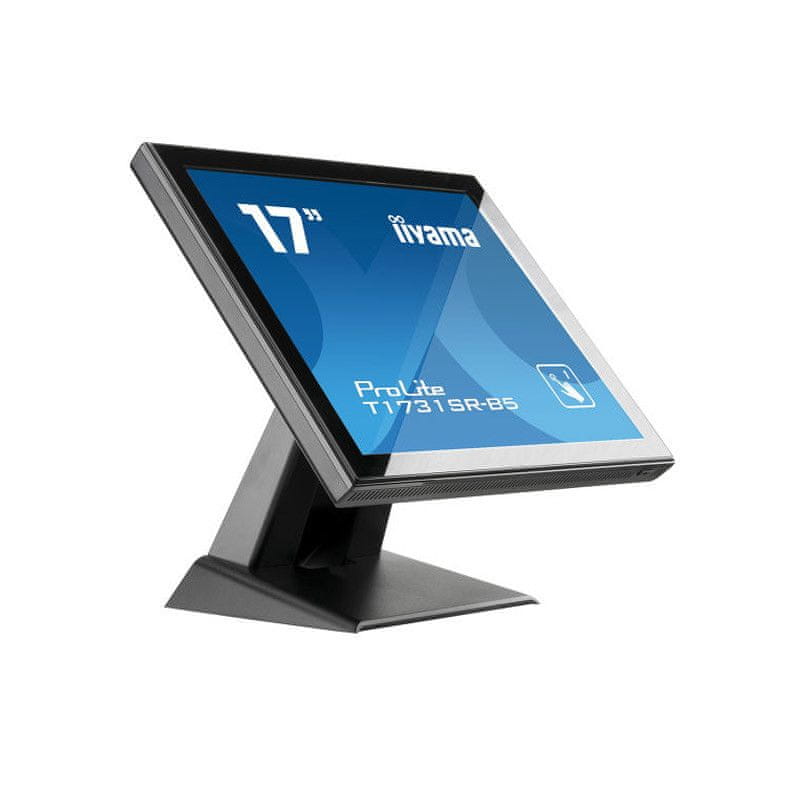 Monitor Iiyama ProLite osjetljiv na dodir s ugrađenim zvučnicima. Razlučivost zaslona je 1280 × 1024 s dijagonalom 43,18 cm (17''). Radi na TN LED tehnologiji koja omogućuje manju potrošnju energije i duži vijek trajanja. Vrijeme odziva je 14 ms.