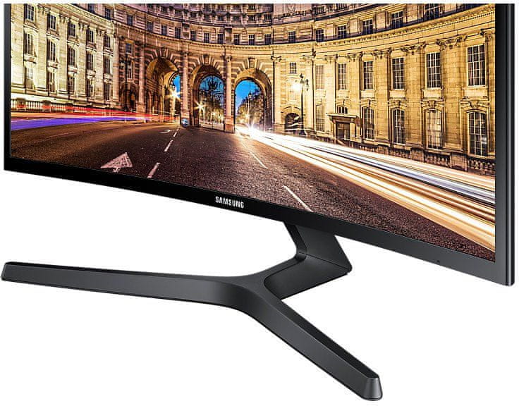 Monitor Samsung C24F396FHU dijagonale 59,8 cm (23,5'') i prikazuje sliku u Full HD rezoluciji (1920 × 1080). Zakrivljen je s 1800mm radijusom luka i tako pokriva vaše cijelo vidno polje i čini boljim osjećaj dubine te smanjuje periferne smetnje.