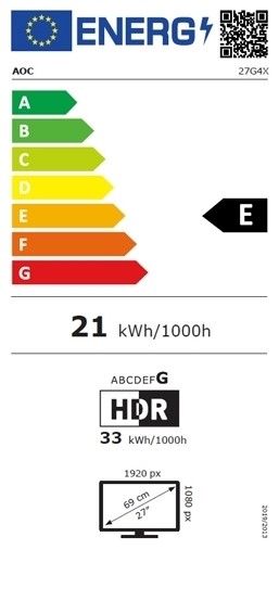 AOC 27G4X gaming monitor može se pohvaliti IPS tehnologijom zaslona i 68,6 cm (27") zaslonom u Full HD (1920 × 1080) visokoj razlučivosti i učestalosti osvježavanja** 180 Hz**.