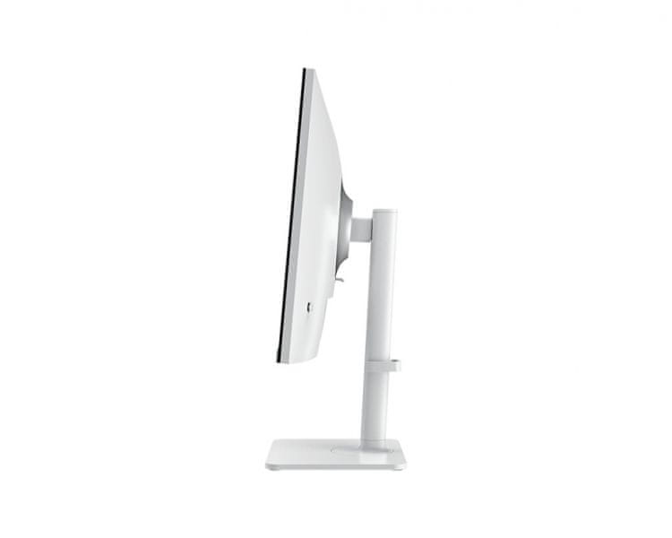 Elegantan bijeli dizajn uklapa se u svaki prostor. Monitor omogućuje potpunu ergonomsku prilagodbu, uključujući podešavanje visine, nagib i funkciju Pivot (zakretanje za 90°). Povezivost je vrhunska s priključkom USB-C, koji podržava prijenos slike i punjenje uređaja od 65 W, te dodatnim USB ulazima za periferiju. Ugrađeni zvučnici optimizirani su tehnologijom Dolby Audio.