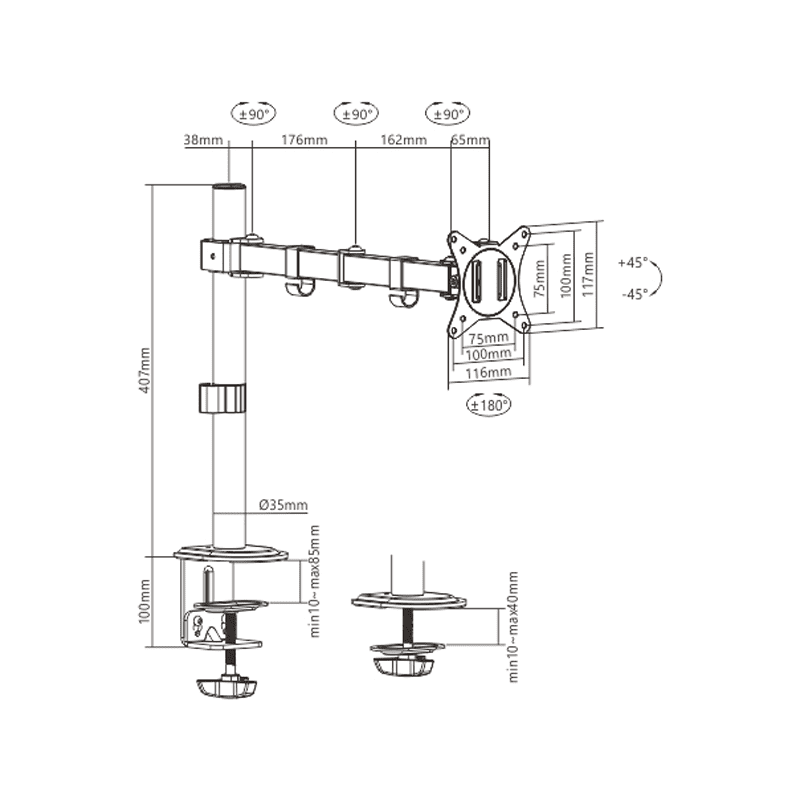 - Kompatibilno s VESA standardom: 100×100, 75×75 mm
