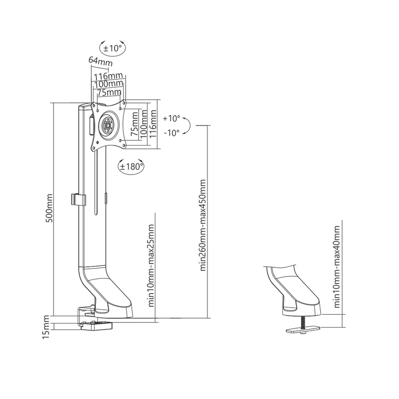 - Dizajniran za monitore od 17″ do 32″ (ili veće, ako težina ne prelazi 8 kg i VESA standard je kompatibilan s nosačem)