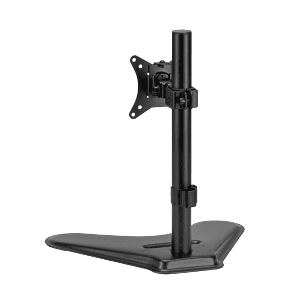 Stolni stalak za jedan monitor, izrađen od čelika i plastike, koji omogućuje stabilnu montažu i uredno radno okruženje.