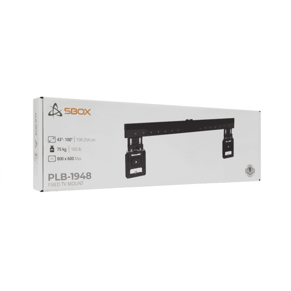 Zidni stalak PLB-1948 – Fiksni stalak za TV ekrane 43–100 s VESA standardom 200×200 do 800×600, nosivosti do 75 kg. Crna boja, odvojiva VESA ploča, libela i čvrst materijal (aluminij, čelik, plastika). Idealno za ravne ekrane s montažom na zid.