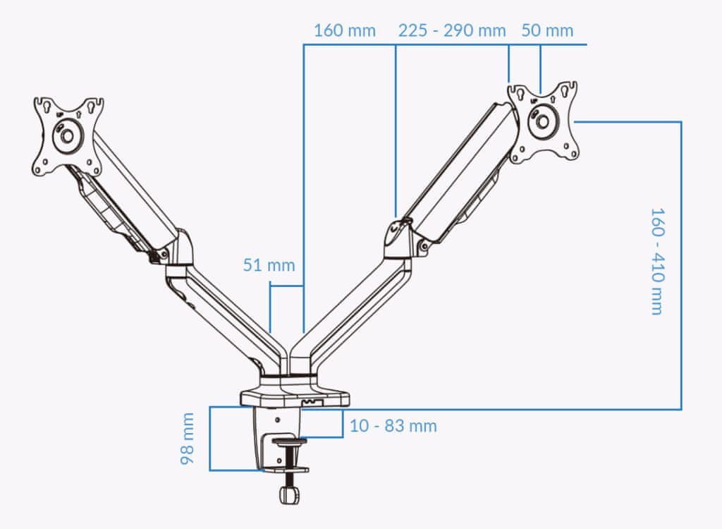 UVI VESA nosač s plinskom oprugom za dva monitora izrađen je od materijala vrhunske kvalitete i osigurava dugi vijek trajanja. Time ćete postići veću fleksibilnost svog radnog prostora.