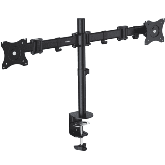 VonHaus dvostruki stolni nosač je namijenjen montiranju dva monitora veličine od 33 do 68.6 (13" do 27"). Možete ih posebno naginjati, okretati i zakretati. Odlikuje ga ručica koja se istegne do 42.8 cm. Opremljen je s VESA postavkama te podupire VESA 75×75 i VESA 100×100 standard.