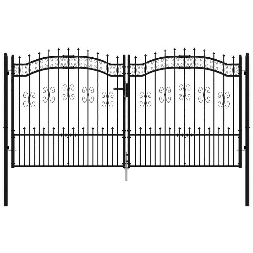 Vidaxl Vrata za ogradu s kopljem na vrhu crna 305 x 150 cm čelik s praškastim premazom