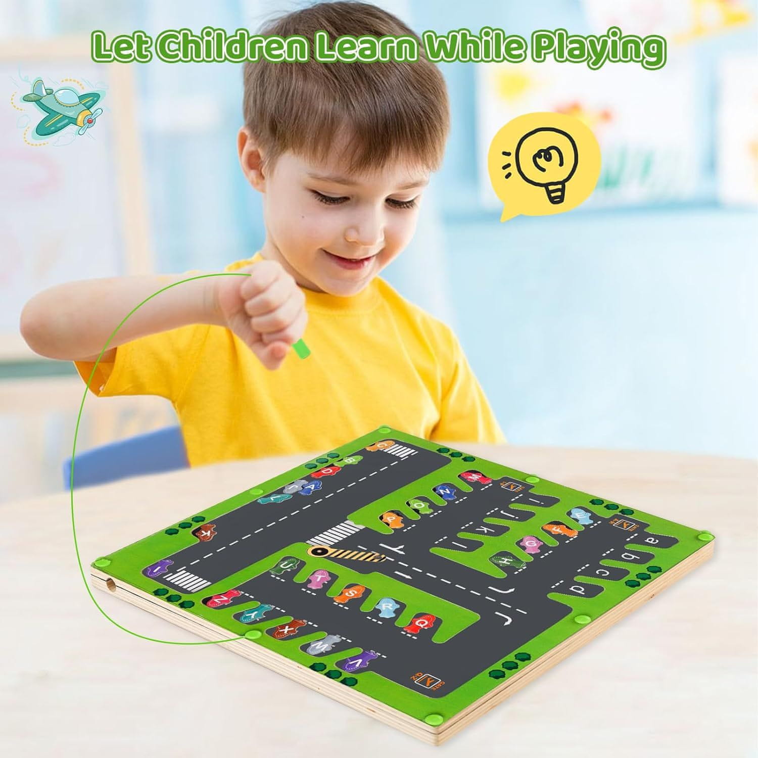 Otkrijte fascinantan svijet učenja kroz igru uz ovu jedinstvenu drvenu magnetsku ploču koja učenje abecede pretvara u uzbudljivu avanturu na parkiralištu. Ova interaktivna edukativna igračka dizajnirana je s ciljem podržavanja razvoja najmlađih, kombinirajući trening fine motorike s logičkim razmišljanjem. Dijete, koristeći posebnu magnetsku olovku, vodi šarene autiće kroz precizno izrađen labirint, spajajući ih s odgovarajućim parkirnim mjestima označenim slovima. To je idealan način za prirodno upoznavanje mališana s abecedom i oblikom slova na potpuno bezstresan i angažirajući način. Proizvod se ističe kvalitetom izrade od prirodnog drva, što osigurava dugovječnost tijekom godina intenzivne uporabe. Glatka površina i pažljivo zaobljeni rubovi pružaju sigurnost tijekom korištenja, a čvrsta akrilna ploča učinkovito štiti sve elemente od gubljenja, olakšavajući održavanje reda. Magnetska olovka je trajno pričvršćena na uzicu, zahvaljujući čemu je uvijek spremna za upotrebu. Ova ploča gradi strpljenje i koncentraciju, odvlačeći djecu od ekrana te razvijajući njihovu maštu i manualne sposobnosti.