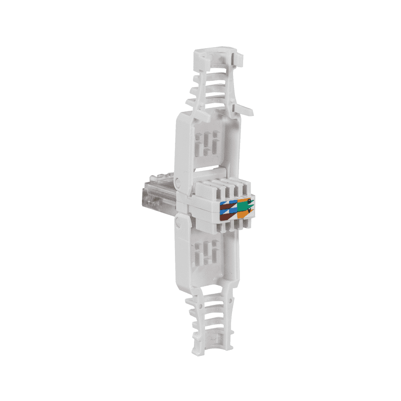UTP konektor RJ45 CAT5/6 TI18 Q/6. Primeren za montažo brez orodja. Primerno za kable AWG 24 – 26 do premera 6,5 mm. Pasovna širina do 500 MHz.