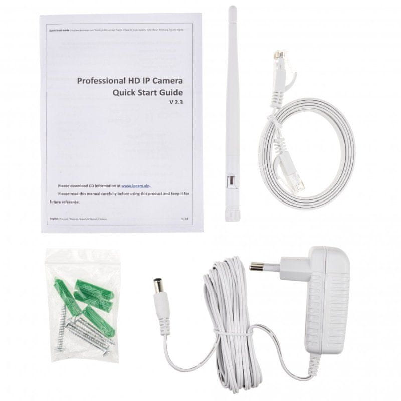 Instalacija kamere je vrlo jednostavna. Umetnite mikro SD memorijsku karticu u kameru i pomoću isporučenih vijaka za pričvršćivanje pričvrstite kameru na odabrano mjesto. Koristite strujni adapter za spajanje fotoaparata na električnu utičnicu. mrežu, a zatim na usmjerivač putem LAN kabela. Nakon postavljanja kamere prema uputama, kamera može bežično komunicirati putem WiFi mreže.