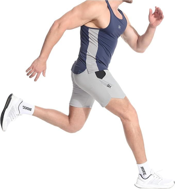 Muške sportske kratke hlače BROKIG Gym s dvostrukim džepom za trčanje, svijetlosive, Veličina L