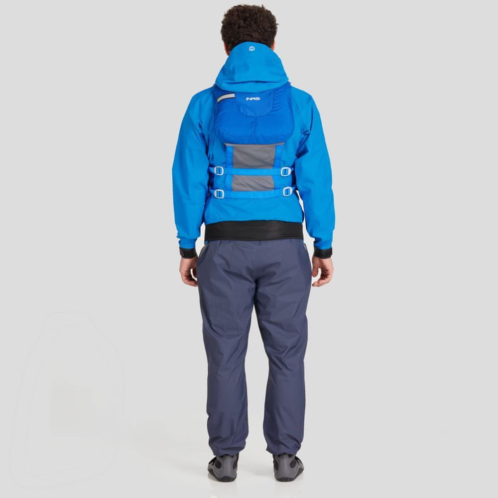 NRS Tor Splash Jacket je tehnička muška jakna namijenjena zahtjevnim vodenim sportovima poput kajaka, raftinga ili SUP-a. Izrađena je od 2,5-slojnog HyproTex™ materijala, lagana je, vodootporna i prozračna te omogućuje slobodu pokreta u svim vremenskim uvjetima. Podesiva kapuljača i neoprenski pojas s dvostrukim čičak-zatvaranjem pomažu da ostanete suhi i u najgrubljim uvjetima.