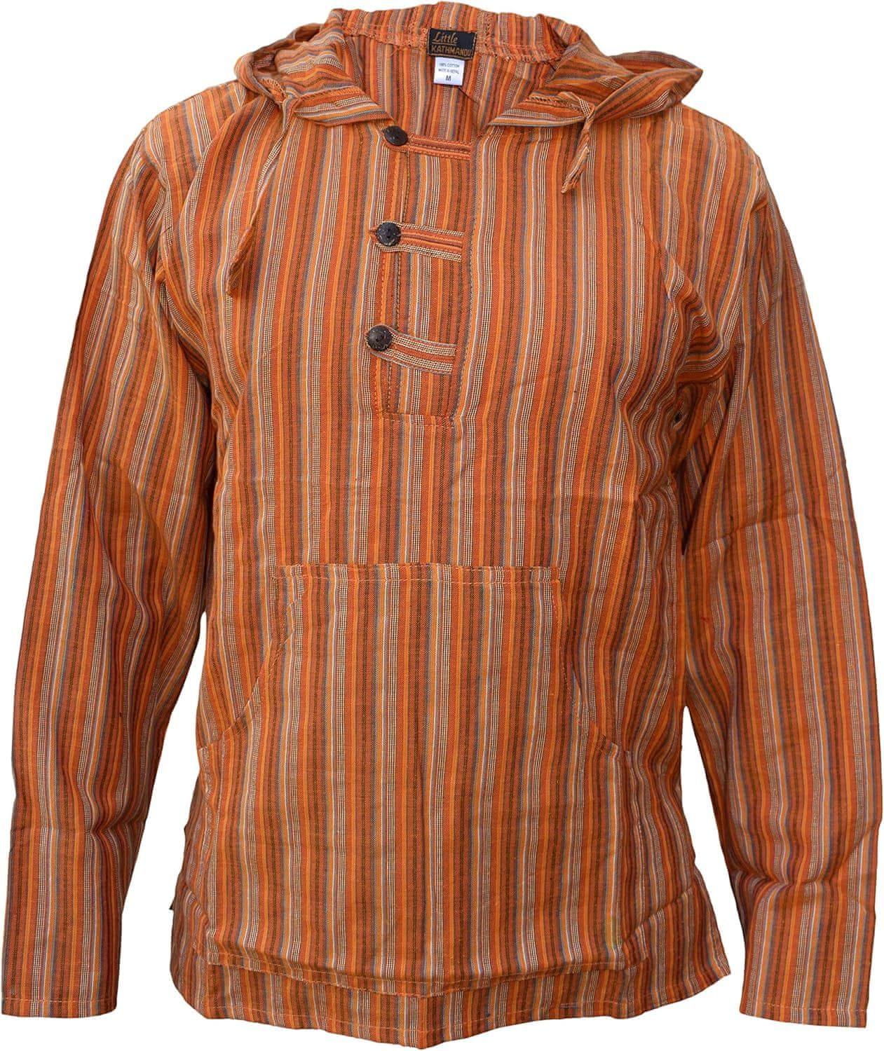 Nikcorp Muška pamučna košulja s kapuljačom na pruge, narančasta, 4XL, lagani pamuk, dugački rukavi, boho stil za festivale