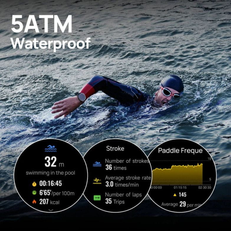Revolucija u sportskim načinima rada: padel i još mnogo togaTrenirajte i napredujte sa svakom sesijom uz napredne značajke. Ovaj pametni sat ima poseban način rada s automatskim prijelazom za plivanje, biciklizam i trčanje, s jedinstvenim podatkovnim centrom. Podržava različite distance poput sprinta, olimpijske ili freestyle discipline. Uz to, nudi više od 150 sportskih načina rada, uključujući ekskluzivni način za padel tenis.