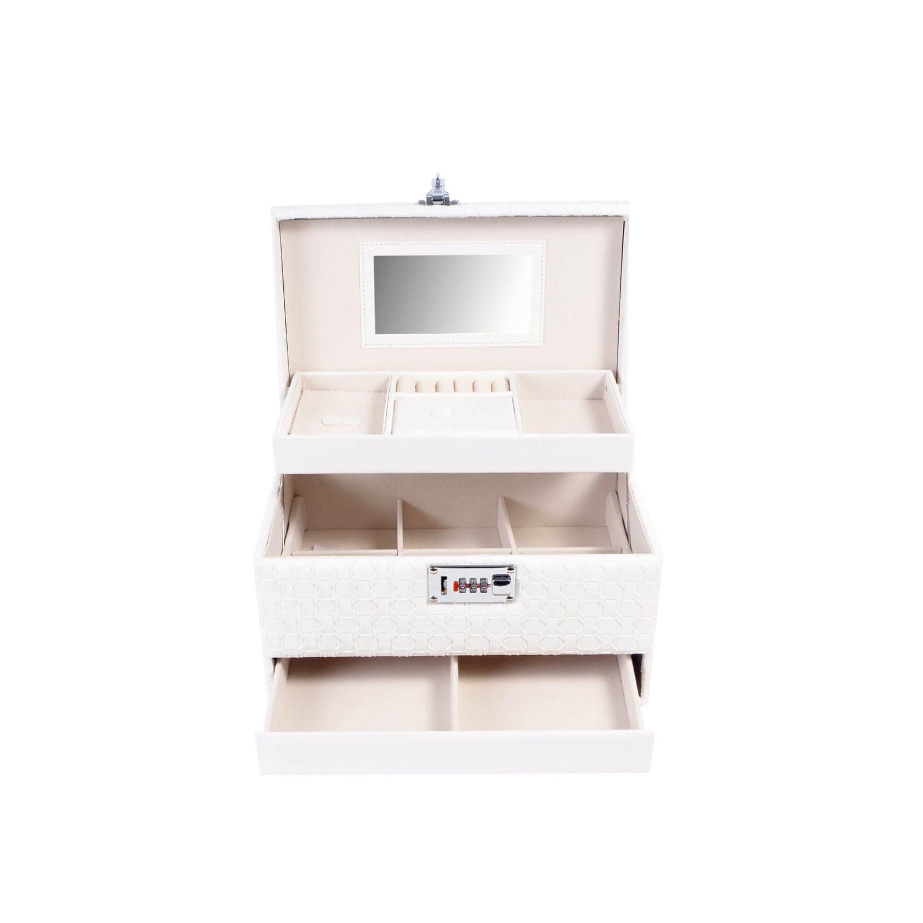 Elegantna bež boja daje kutiji za nakit bezvremenski izgled koji se uklapa u bilo koji interijer. Bilo da je smjestite u spavaću sobu, kupaonicu ili na toaletni stolić, uvijek će djelovati kao stilski dodatak.