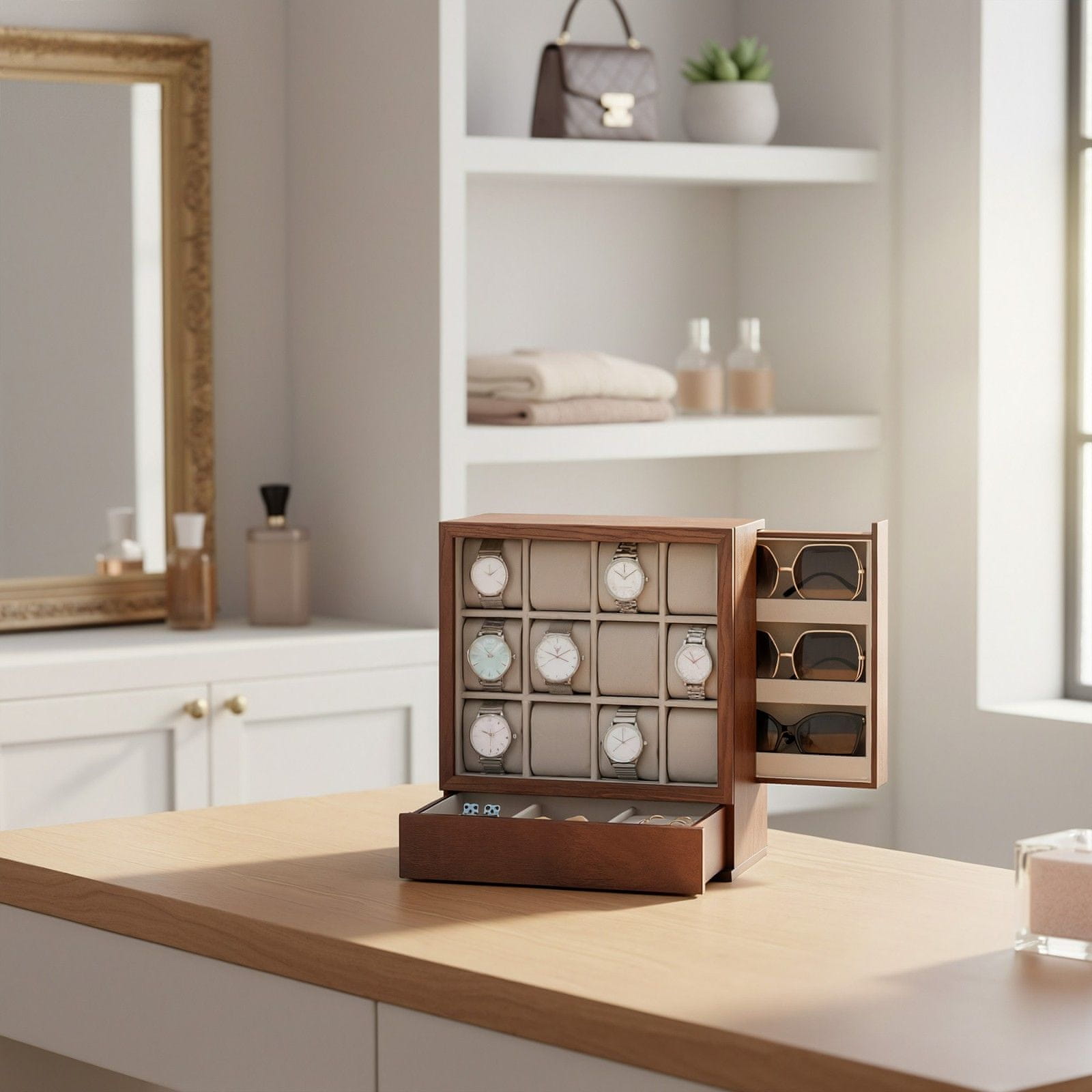 Ova kutija za satove nudi moderan i organiziran prostor za vašu kolekciju satova. S prozirnim prozorom i mekanim oblogama čuva vaše satove zaštićenima i lijepo izloženima. Idealna za uštedu prostora i isticanje vaših omiljenih satova.