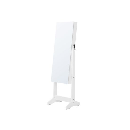 Ovaj samostojeći ormar za nakit s ogledalom pune dužine nudi elegantno i praktično rješenje za organizaciju vašeg nakita i šminke. Dizajniran za uredno spremanje i jednostavan pristup vašim dodacima i kozmetici ima vrata s bravom za dodatnu sigurnost. Ogledalo bez okvira omogućuje vam da provjerite svoj izgled od glave do pete što ga čini idealnim dodatkom vašoj spavaćoj sobi ili garderobi.