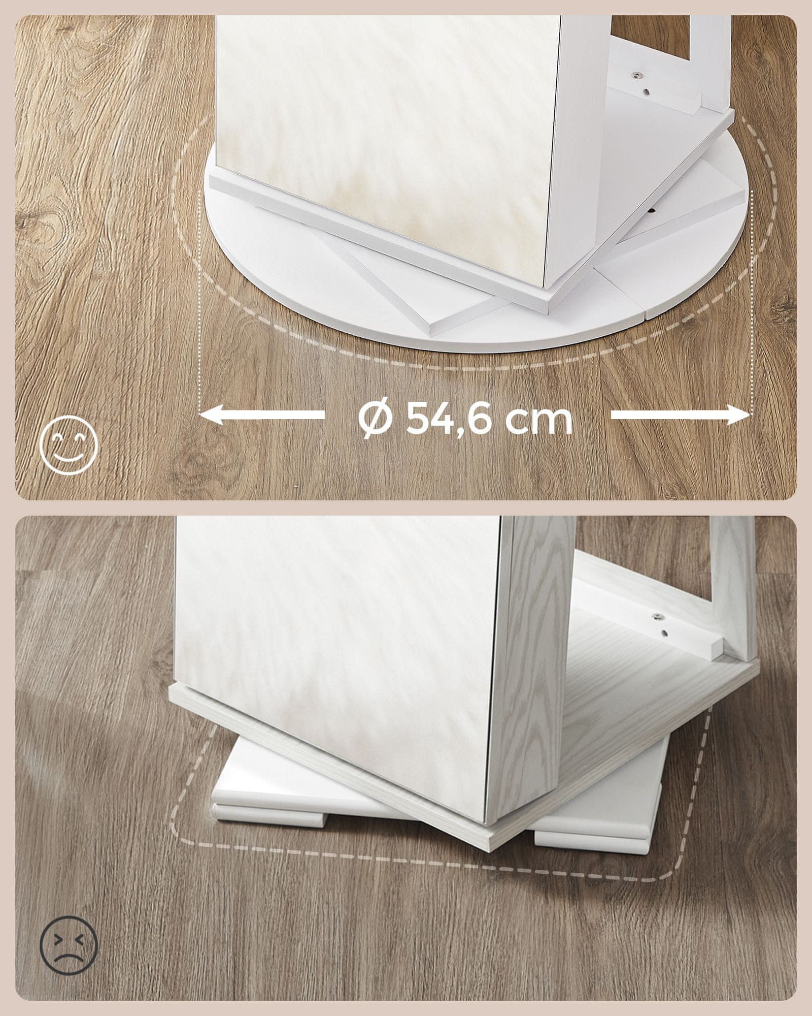Ovaj ormarić za nakit nudi praktičan način za organizaciju i zaštitu vaših modnih dodataka, dok vam istovremeno pruža ogledalo u punoj dužini za provjeru odjevnih kombinacija. Prostrana unutrašnjost održava vašu kolekciju urednom i lako dostupnom.