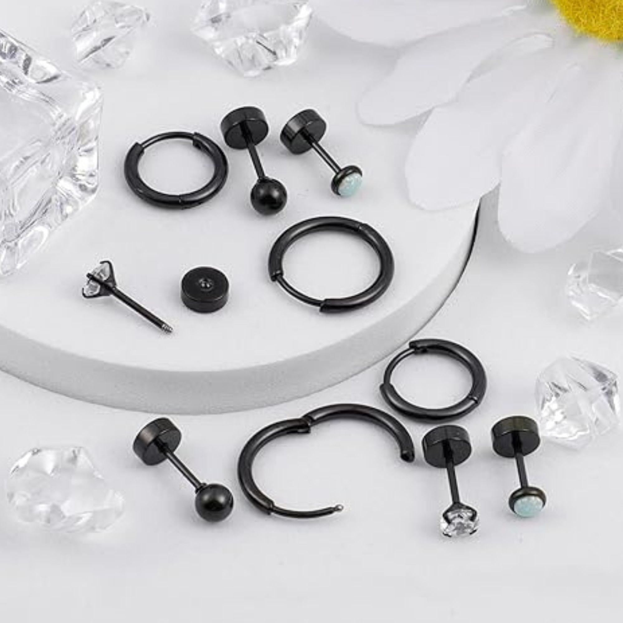 VIVVA® Naušnice od kirurškog čelika 316L – hipoalergenske, set 8 pari, bez nikla | LUXGENIC Crna