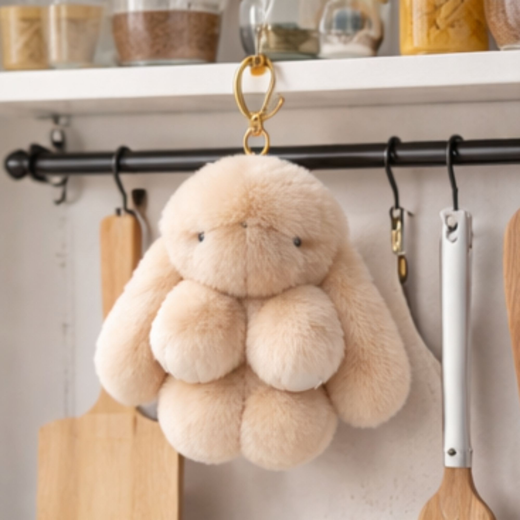 VIVVA® Premium privjesak za ključeve zeko 14 cm od mekanog umjetnog krzna, dekorativni privjesak za torbe i ključeve | BUNNPY Bež