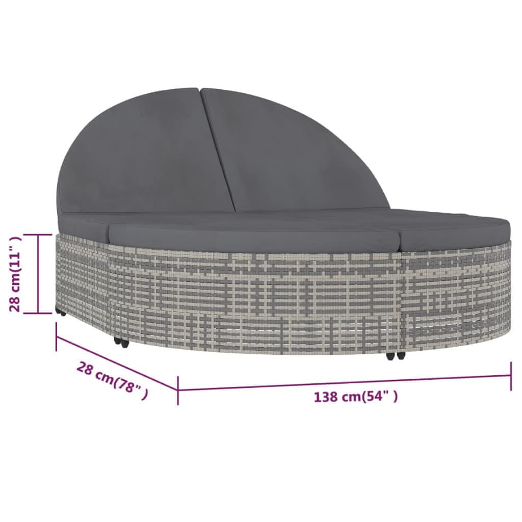 Vidaxl Ležaljka za sunčanje za 2 osobe od poliratana s jastucima siva
