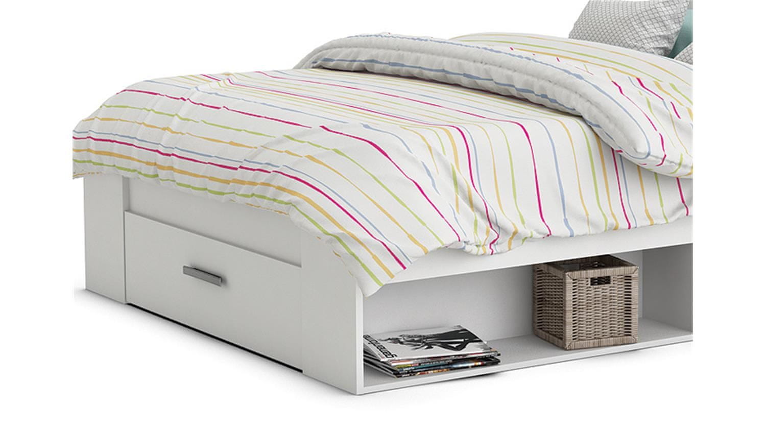 Krevet TECH dizajniran u bijeloj boji, s kojim možete stvoriti različite dizajne spavaće sobe. Ne samo da krevet ima funkciju za spavanje, nego možete i spremiti veći pribor ili posteljinu u donje dvije ladice. Iza naslona je otvoreni stalak koji je izvrstan za pohranu knjiga, a između donjih ladica nalazi se otvoreni prostor u koji možete pohraniti svoje papuče. Krevet je dostupan bez letvice i madraca.