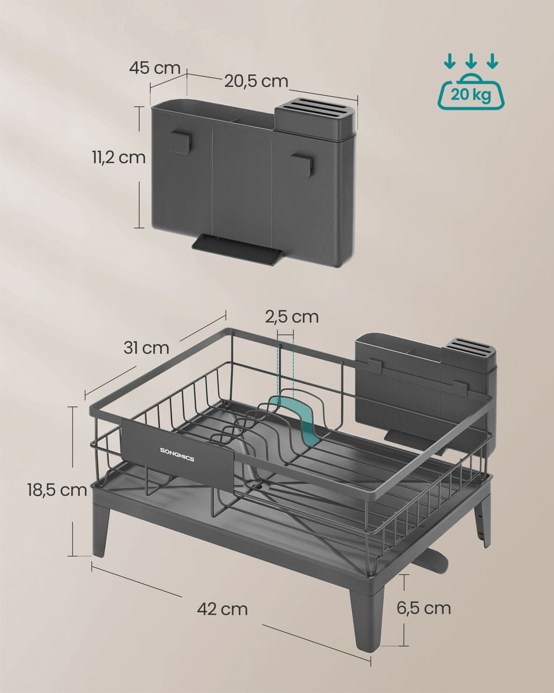 Songmics Oslon za sušenje posuđa 31x42x185 cm Sivi