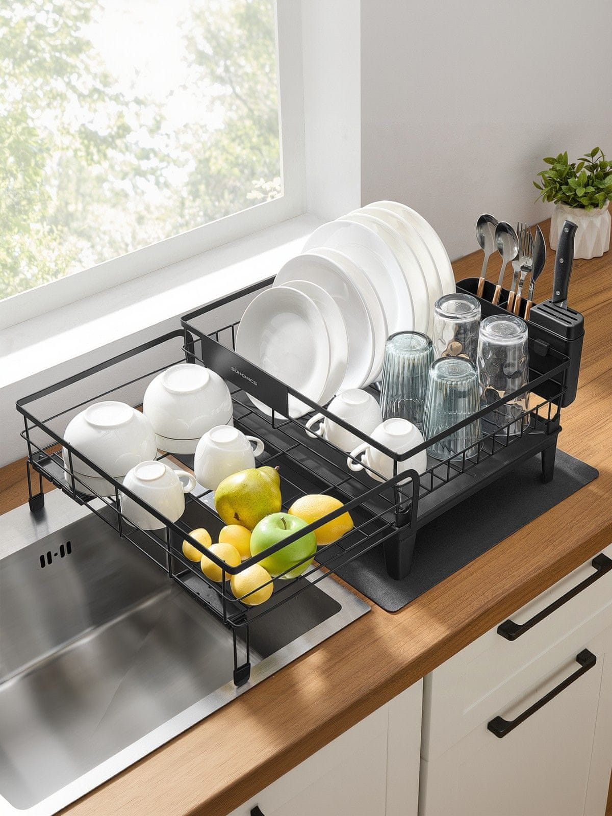 Songmics Oslon za sušenje posuđa 31x42x185 cm Crni